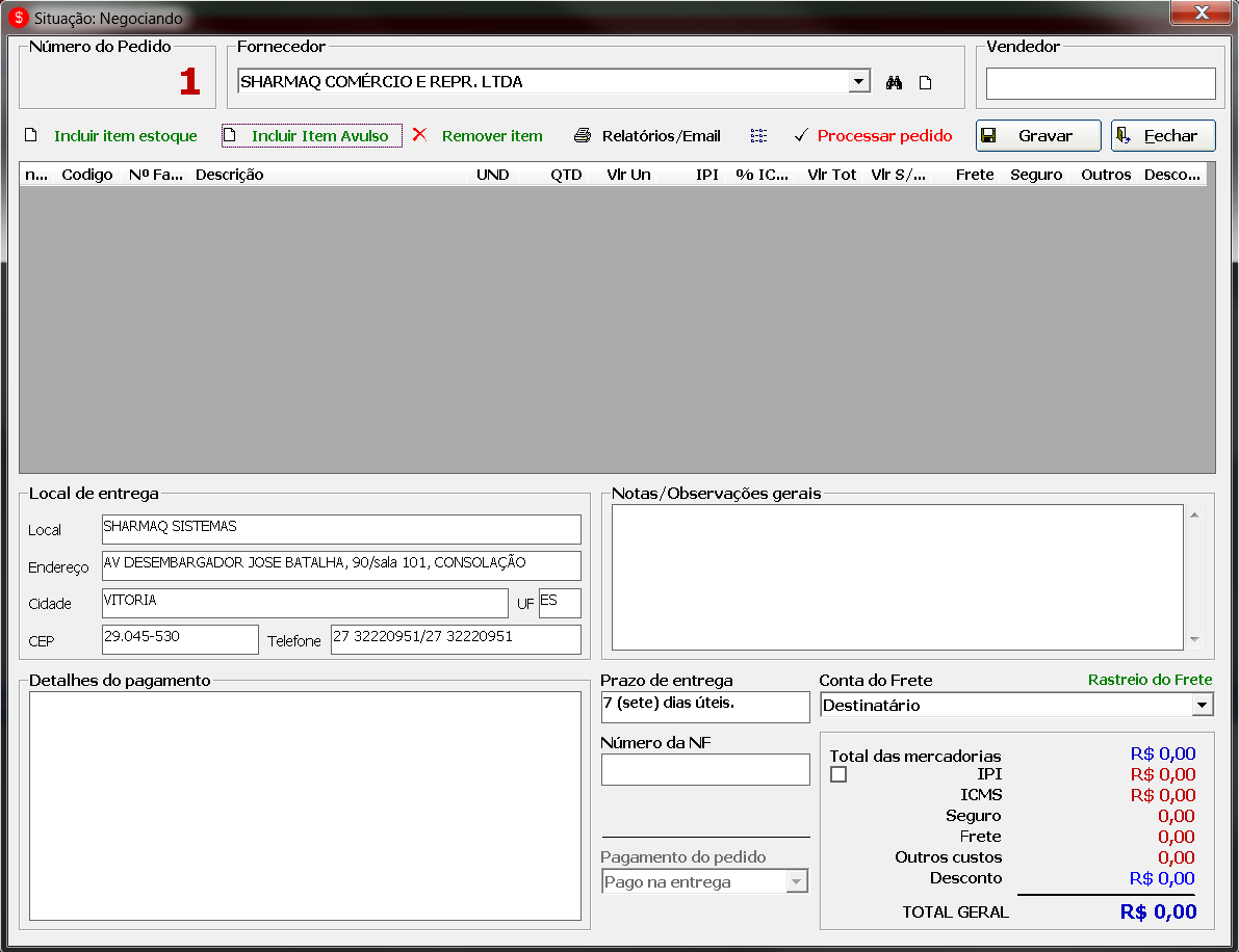 - Estar com o suporte e atualizações em dia com a SHARMAQ.