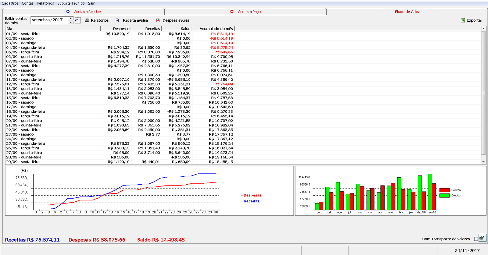 Controle todas as despesas de seu negócio com o módulo de contas, cadastrando contas fixas, gerenciando suas contas a pagar e a receber, visualizando suas despesas e receitas no fluxo de caixa com relatórios financeiros.
