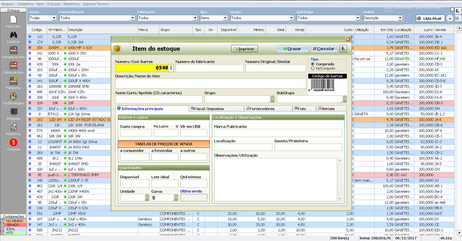 O módulo de estoque gerencia as entradas e saídas de peças/produtos em seu estabelecimento; inclui controle de itens por número de série/lote, itens similares, múltiplas tabelas de preço e muito mais.